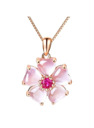 Dainty Pink Crystal Flower Charm Necklace Artgalleryzen